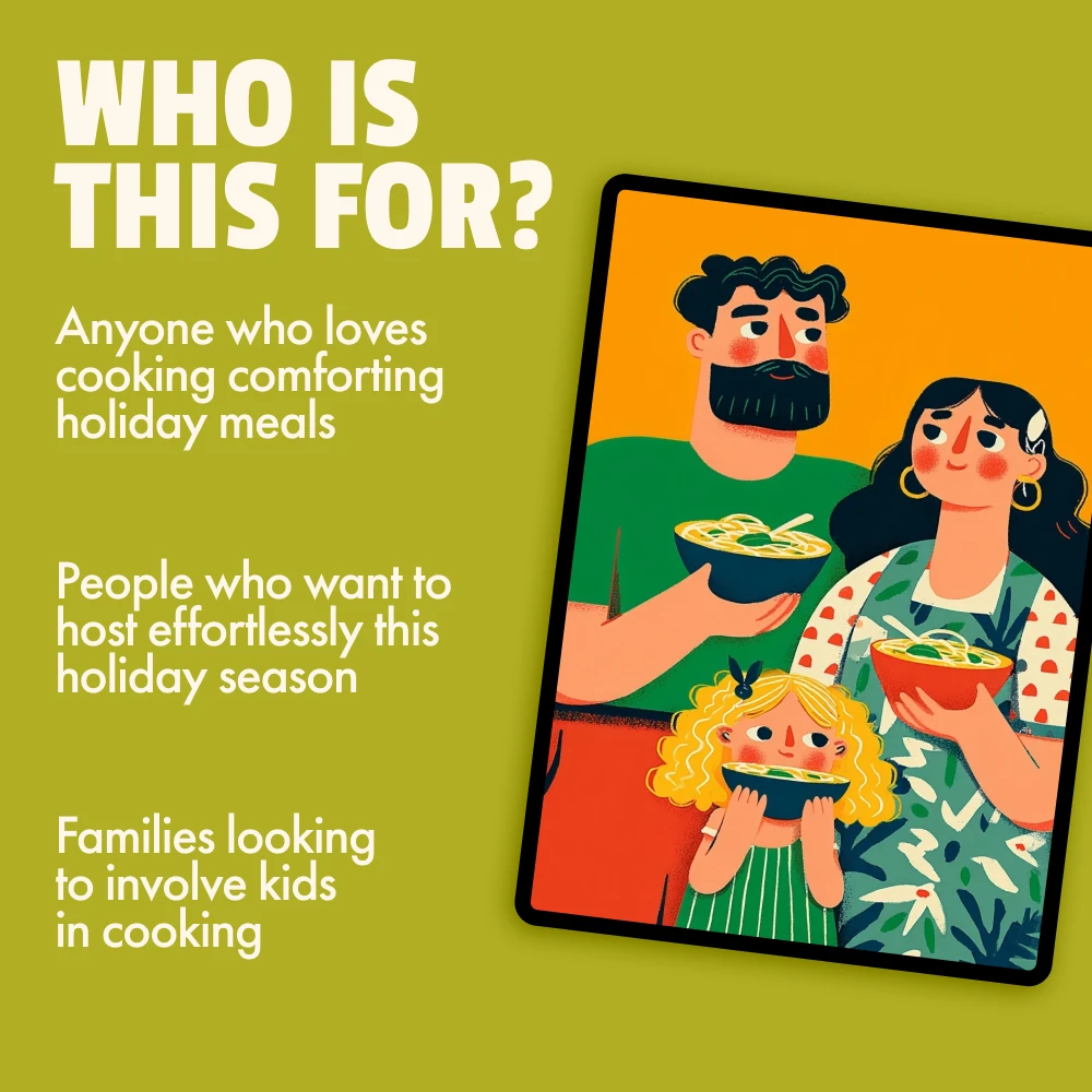 Don’t let holiday meal prep overwhelm you. Download the Holiday Bundle with Comfort Classics now and discover how easy it is to create cozy, comforting meals that your whole family will enjoy. Perfect for both experienced hosts and beginners, this bundle will be your secret weapon for a smooth and delicious holiday season.
