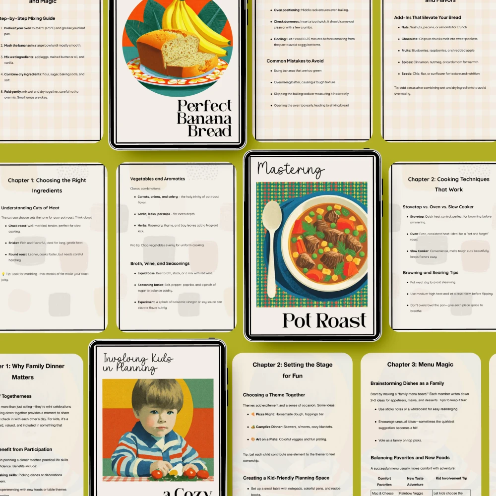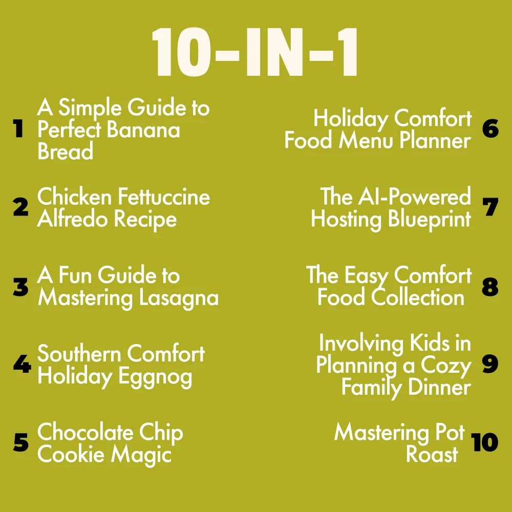 This bundle is perfect for anyone looking to learn how to plan holiday comfort food menus with ease. Inside, you’ll find a mix of classic recipes, expert tips, and practical planning tools that will make your holiday gatherings feel like a breeze. Whether you’re baking your first loaf of banana bread, mastering a delicious pot roast, or creating a festive meal from start to finish, this collection is designed to inspire and guide you every step of the way.