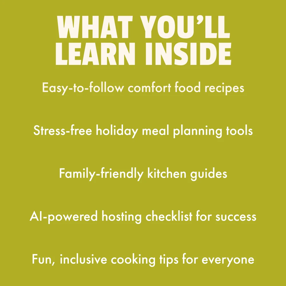 Unlike other recipe collections, the Holiday Bundle with Comfort Classics isn’t just about the meals – it’s about making the entire holiday experience easier and more enjoyable. With AI-powered hosting tools and a focus on planning, this bundle goes beyond traditional recipe guides. Plus, it includes a unique blend of traditional and fun comfort food recipes that everyone will love, including your kids!