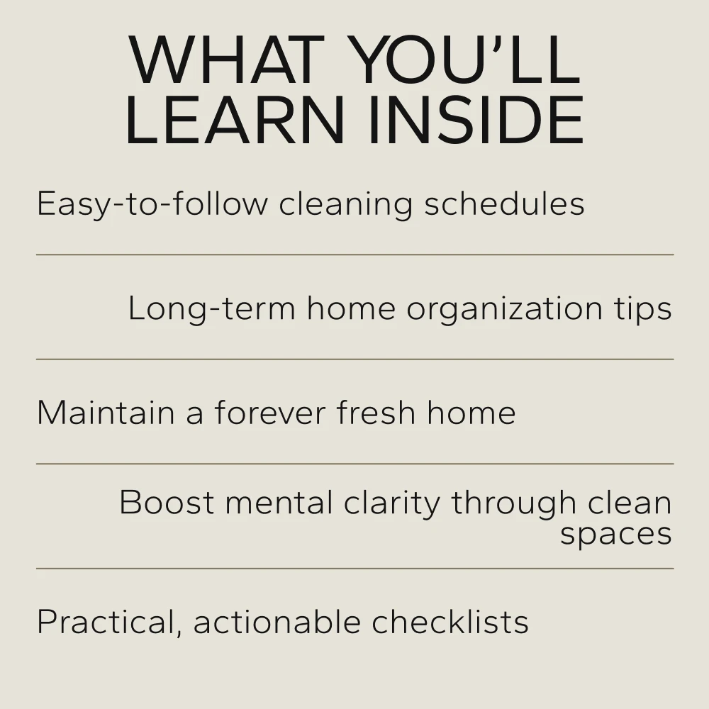 Whether you’re a busy professional, a parent managing a household, or simply someone looking to streamline their cleaning routine, this toolkit is perfect for anyone who wants to create lasting order and cleanliness. Designed for simplicity and effectiveness, it offers a comprehensive approach to home care, so you never have to worry about falling behind on cleaning tasks again.
