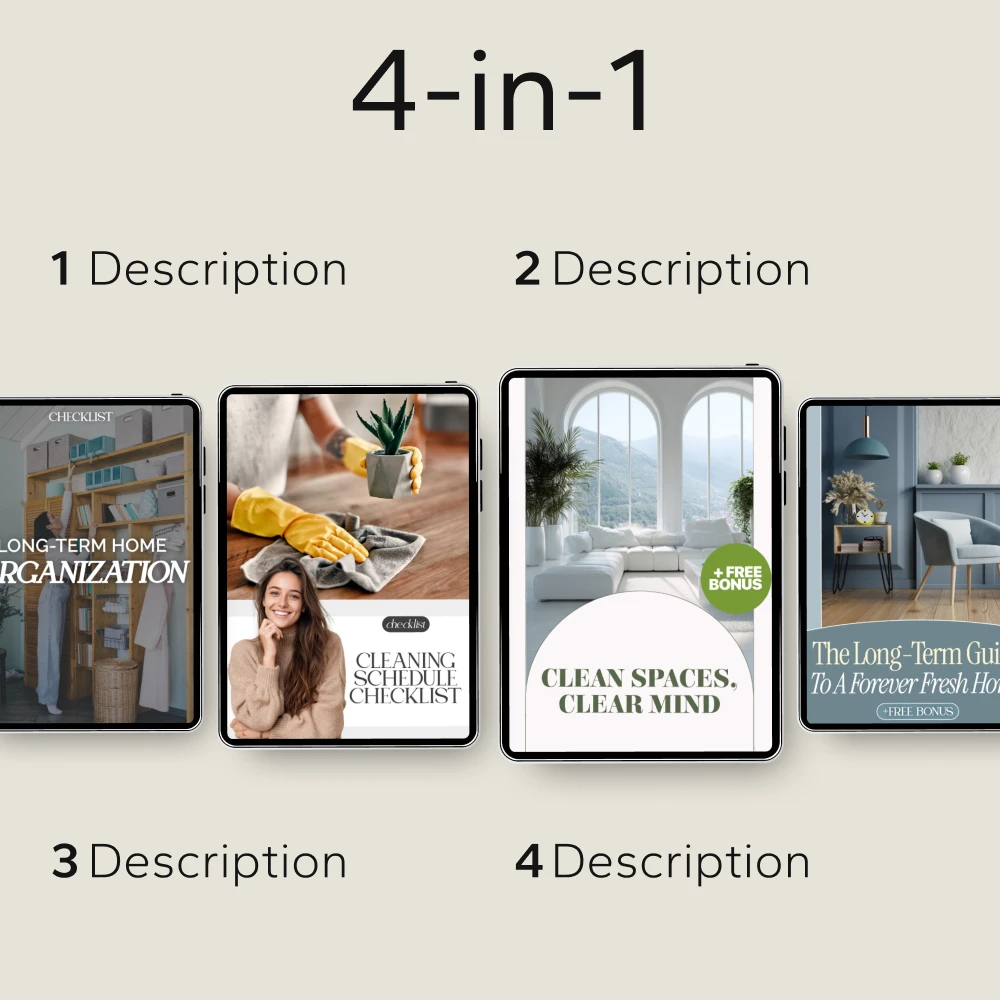 • Clean Spaces, Clear Mind – A step-by-step guide to decluttering your home and mind for ultimate relaxation.