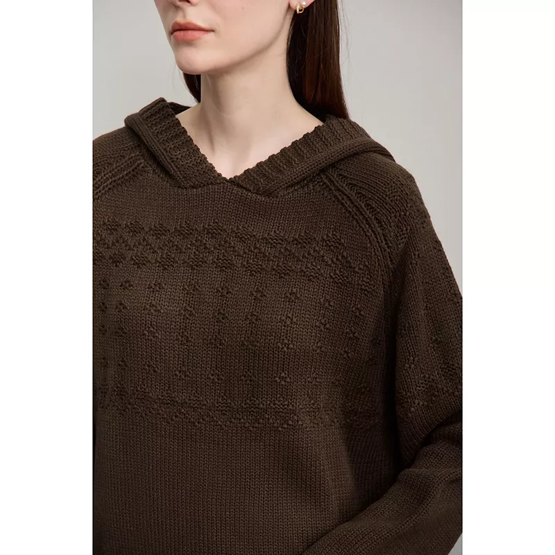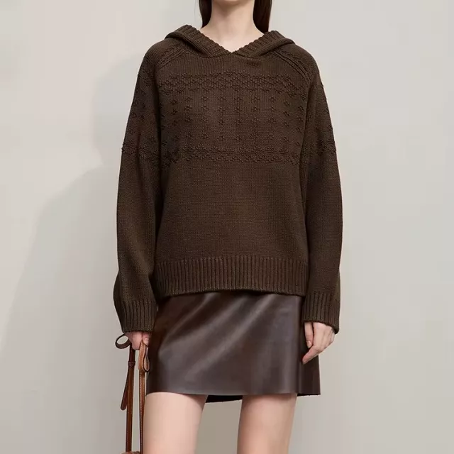 This sweater brings together the best basic features for daily wear: a hooded neckline, full-length raglan sleeves, and a loose-fitting silhouette that flatters effortlessly. Crafted with medium-weight knitted fabric, it feels warm yet lightweight. The solid-color design adds a clean, polished touch that easily pairs with jeans, leggings, or skirts. With lengths ranging from about 41.73 inches (S) to 46.46 inches (XL), you get comfortable coverage that enhances both style and practicality.