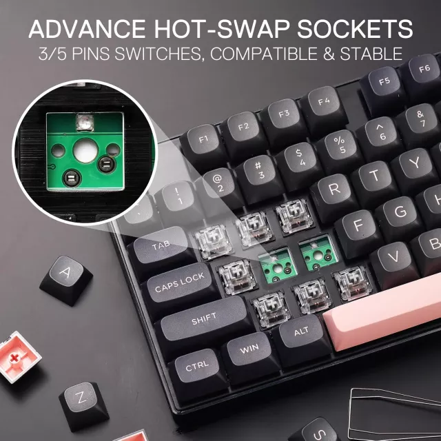 Take your setup to the next level with this full-size 104-key hot-swap mechanical gaming keyboard. Designed for smooth performance and unbeatable comfort, it offers everything you need for long hours of gaming or work. With true hot-swap technology, vibrant RGB lighting, and custom linear switches, this keyboard is built to deliver precision, speed, and style. Whether you’re a casual gamer or a pro, it’s the perfect upgrade for your desk.