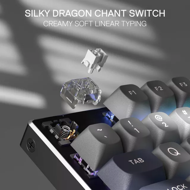 The specially designed linear switches are pre-lubed for silky smooth travel and cushioned keystrokes. With noise-dampening technology, you’ll enjoy a cozy, satisfying typing experience that reduces clatter while still delivering fast, responsive feedback. Perfect for late-night gaming sessions or quiet working environments.