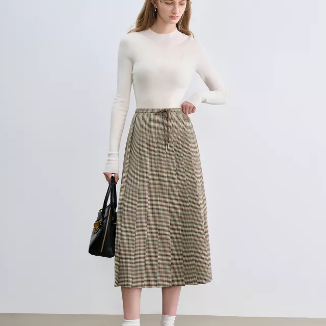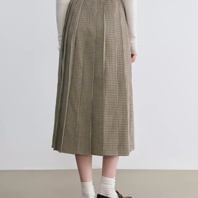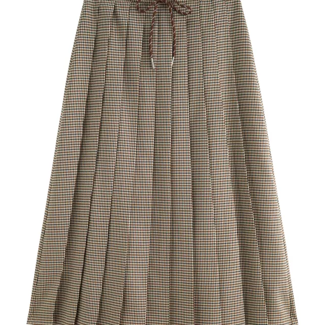 This houndstooth pleated skirt isn’t just another winter wardrobe item; it’s a style statement. The classic gingham pattern adds sophistication, while the pleats give it a playful and feminine movement. Its mid-length cut makes it suitable for a variety of occasions—from casual campus days to relaxed social gatherings. Lightweight yet warm, it’s the perfect piece to mix and match with sweaters, jackets, or boots for endless outfit possibilities. The structured fabric ensures that your look remains crisp and polished throughout the day.