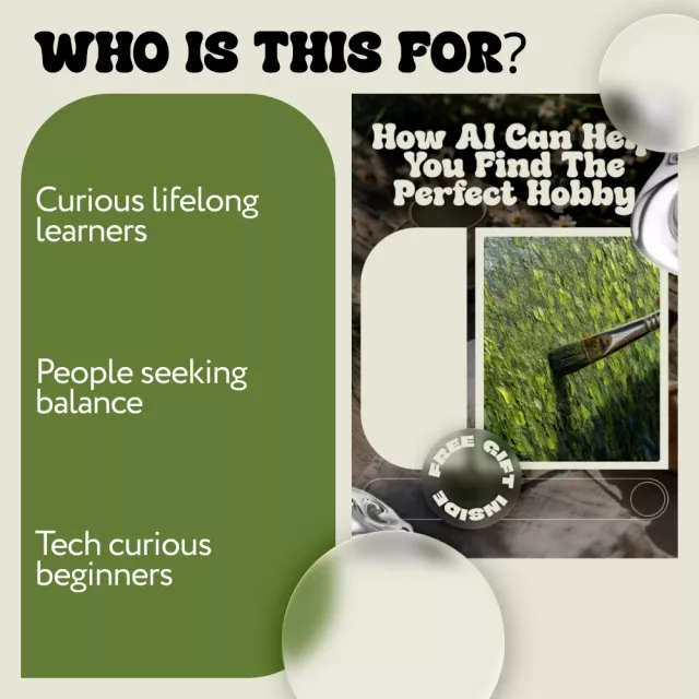 This ebook is ideal for anyone who feels unsure about what they enjoy, wants to try something new, or loves the idea of using technology for self-discovery. It’s perfect for creatives, professionals, students, and lifelong learners who want meaningful hobbies that fit their real lives.