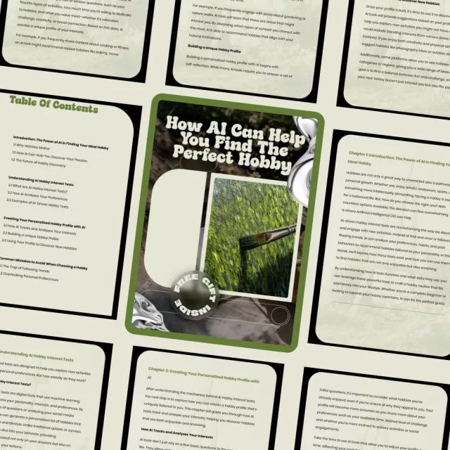 If you’re ready to stop guessing and start discovering hobbies that truly fit you, How AI Can Help You Find the Perfect Hobby is your next step. Download this ebook today and use ai hobby interest tests using ai to uncover passions you didn’t even know you had.