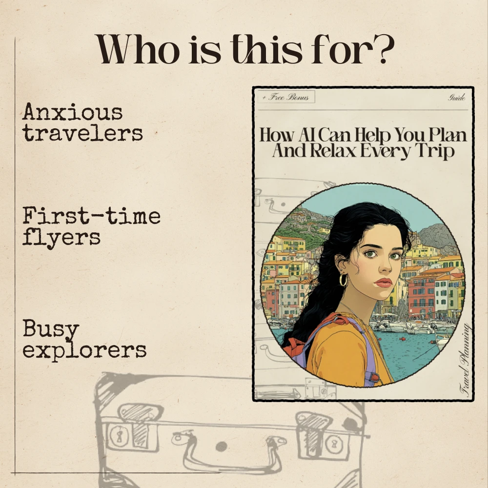 This guide is perfect for frequent travelers, first-time flyers, anxious planners, digital nomads, and anyone seeking a calmer travel experience. If planning stresses you out or traveling feels overwhelming, this resource will help you take back control—using technology that works with you, not against you.