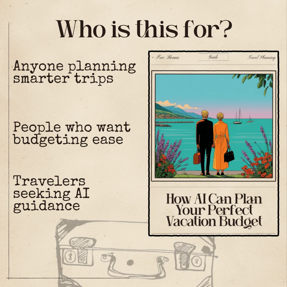 Unlike generic budgeting ebooks, this guide teaches you exactly how to use free and accessible AI tools—not complicated software—to build a personalized, realistic, and optimized travel budget. You’ll also get practical prompts, real-life examples, and simple walkthroughs so you can create a trip budget that finally feels manageable.