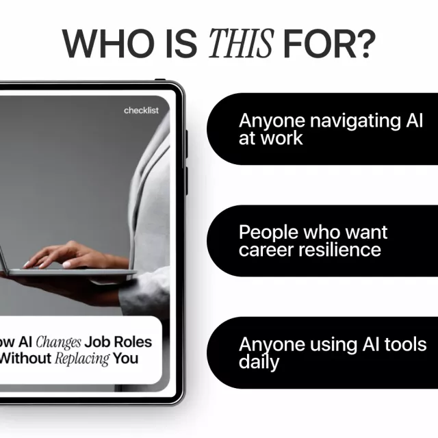 Most resources talk about AI tools. This one focuses on you. Instead of teaching you how to automate everything, it shows how ai changes job roles while keeping decision-making, context, and ownership human. It’s role-agnostic, so it works whether you’re in business, marketing, education, operations, or any knowledge-based role. The checklist format makes it actionable—you can apply it immediately, not someday.