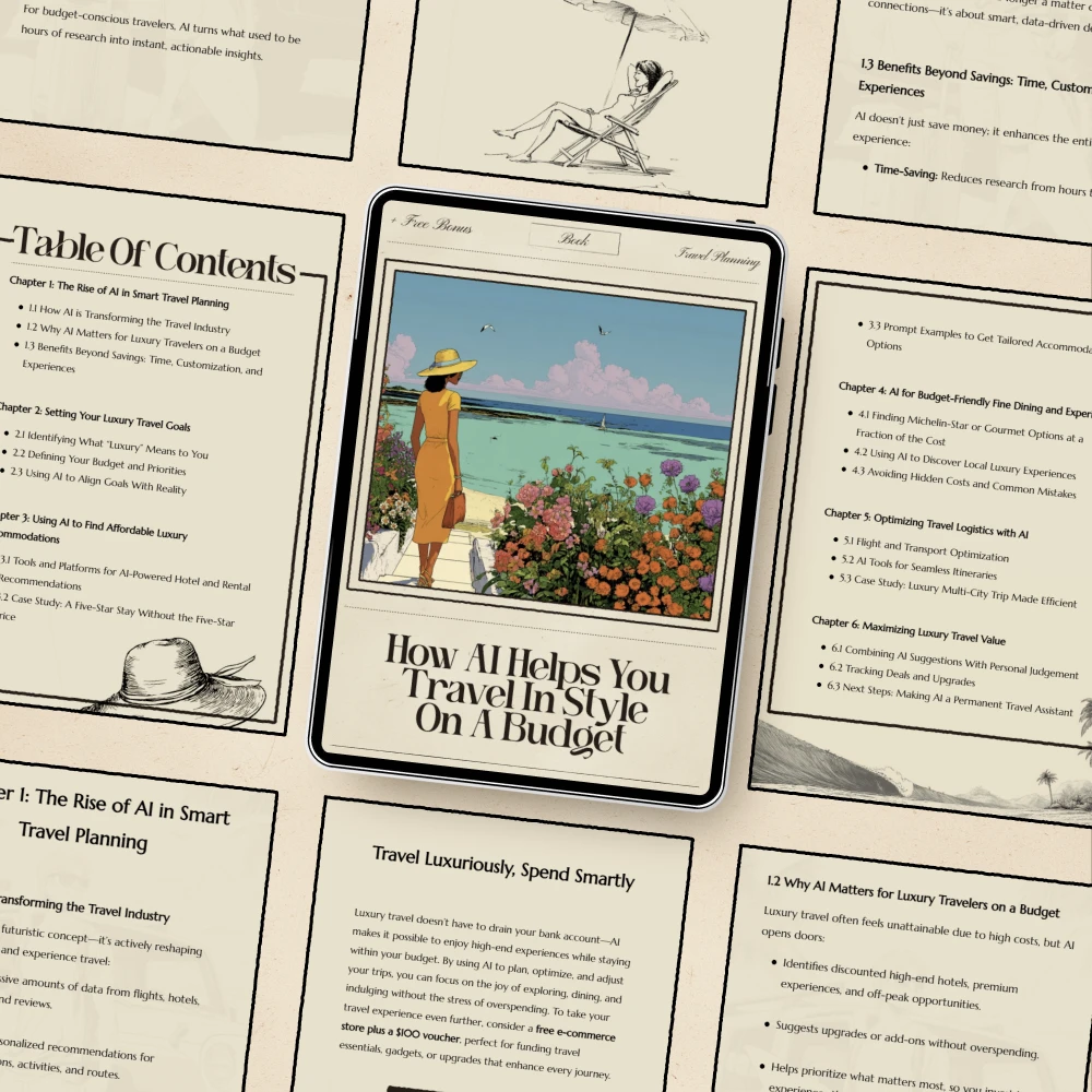 Discover how to experience five-star comfort without the five-star price tag with How AI Helps You Travel in Style on a Budget. This powerful, easy-to-follow eBook shows you how to use ai for luxury travel on a budget to plan unforgettable getaways, stay in dream destinations, and dine in style—without overspending. Whether you love boutique hotels, gourmet dining, or seamless itineraries, this guide helps you blend modern technology with smart travel strategy so you can enjoy luxury your way, at a fraction of the cost.