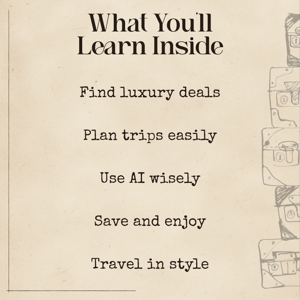 Unlike typical travel guides that focus on discounts or hacks, this eBook teaches you how to use AI as your personal travel concierge. It bridges technology with human touch, showing you how to design luxurious itineraries that fit your lifestyle, taste, and budget. It’s more than a guide—it’s your key to unlocking the art of affordable sophistication.