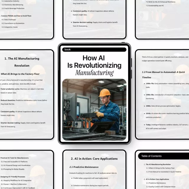 This resource isn’t filled with fluff or vague theory. It offers real-world examples, simplified breakdowns, and actionable insights manufacturers can start using right away. Whether you’re exploring AI for the first time or searching for strategies to strengthen your competitive advantage, this ebook gives you clear steps, modern best practices, and proven frameworks. Unlike many generic AI guides, this one is tailored specifically to industrial operations and the realities of real production floors.