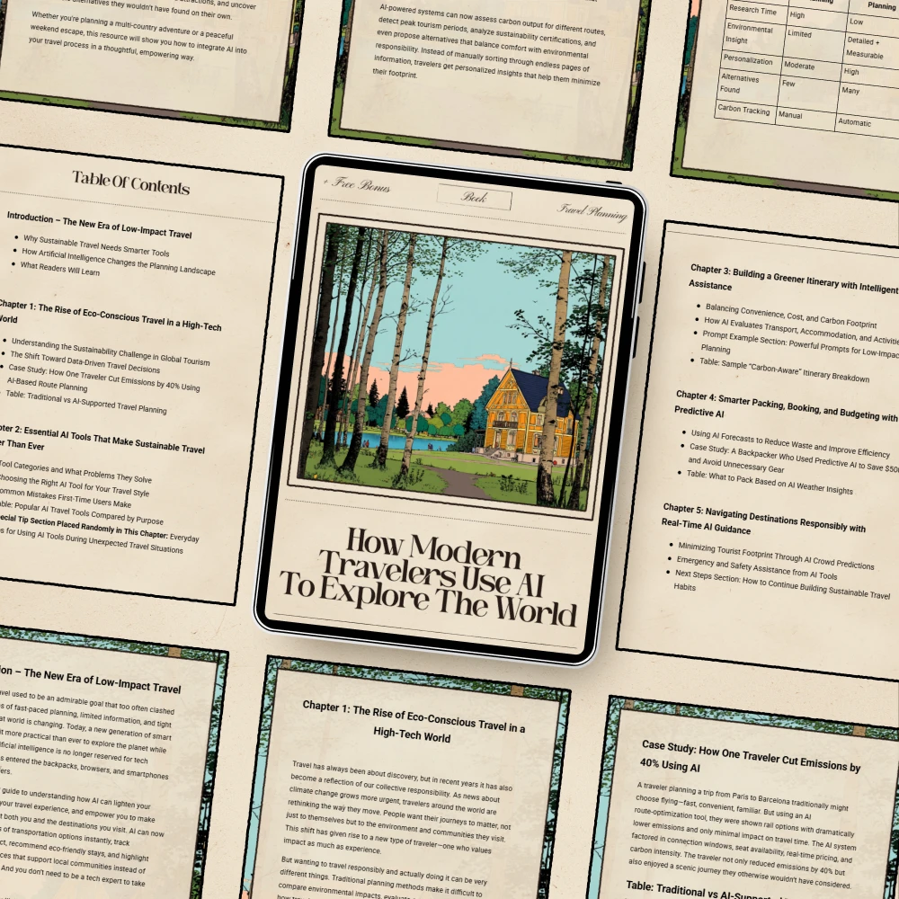 Discover a smarter, greener way to explore the world with How Modern Travelers Use AI to Explore the World—a powerful digital eBook designed for eco-conscious adventurers who want to travel responsibly without sacrificing comfort or convenience. This guide reveals how today’s most innovative tools are transforming sustainable travel, making it easier than ever to plan low-impact journeys. Whether you’re a frequent flyer, a backpacker, or someone planning your first environmentally mindful getaway, this resource shows you exactly how to use modern technology to reduce your footprint and elevate your travel experiences. Perfect for anyone searching for ai tools for sustainable travel planning.