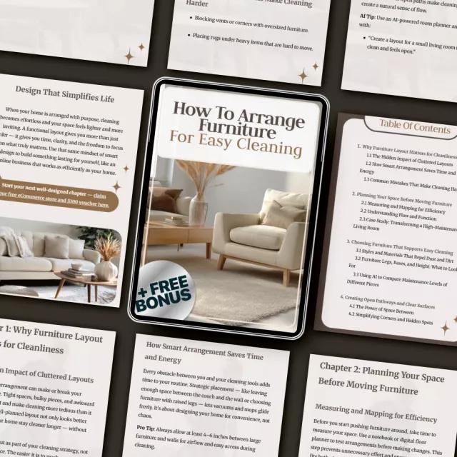 Don’t let cluttered layouts and hard-to-clean corners steal your time. Download How to Arrange Furniture for Easy Cleaning today and start creating a home that looks stunning, feels open, and practically cleans itself.