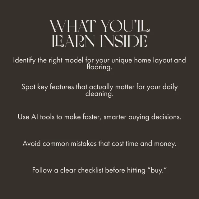 This guide is perfect for homeowners, apartment dwellers, and pet owners who want a clean home without the hassle. It’s also ideal for tech-savvy individuals who want to integrate smart cleaning solutions into their daily routines. If you’re ready to buy a robot vacuum but aren’t sure which one is truly right for you, this is the digital resource you’ve been waiting for.