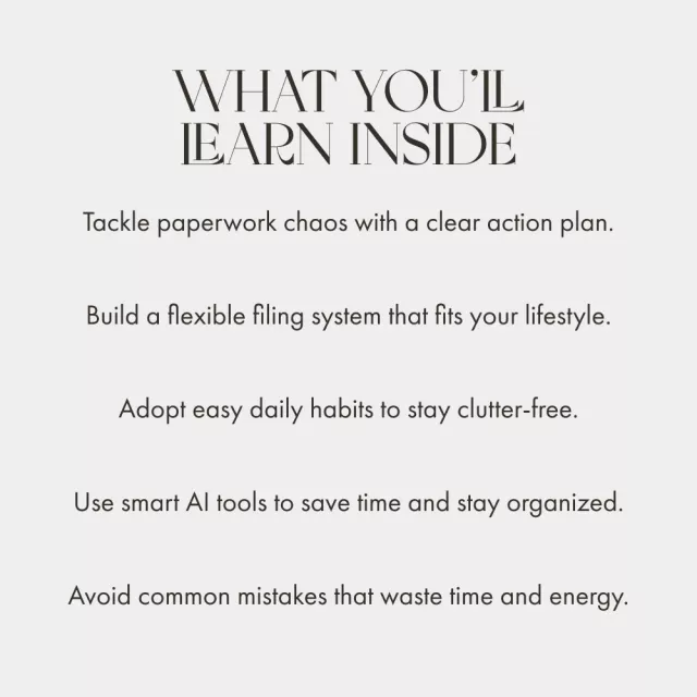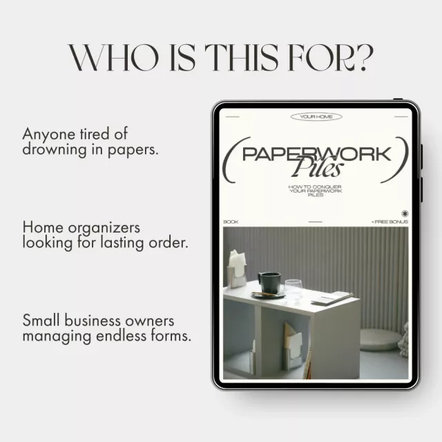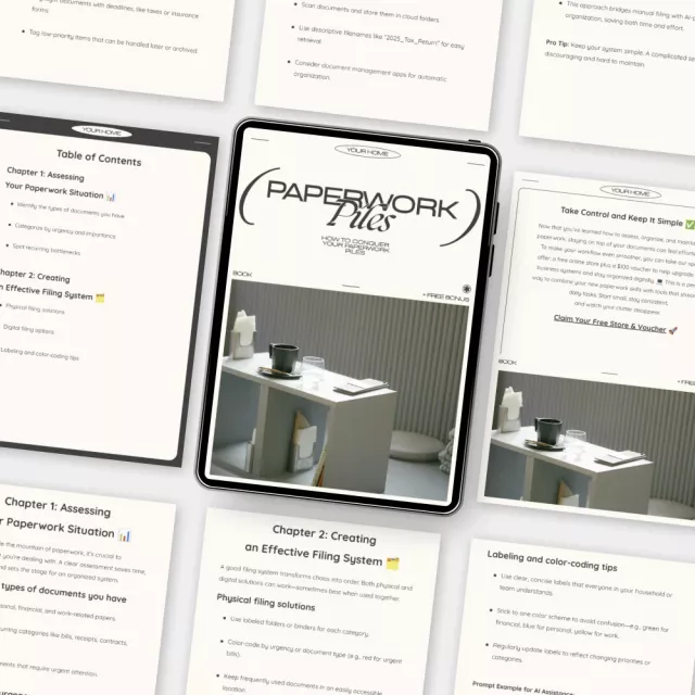 Are your stacks of bills, receipts, and notes taking over your workspace? How to Conquer Your Paperwork Piles is your ultimate step-by-step eBook to finally reclaim your desk, your time, and your peace of mind. Designed for busy professionals, home organizers, and anyone tired of feeling buried under paper clutter, this easy-to-follow guide walks you through every stage of organization—so you’ll always know what to do when paperwork piles up.