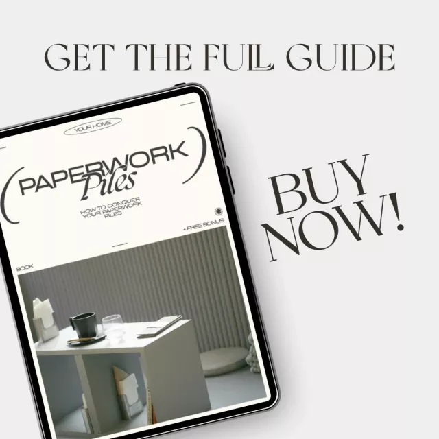 How to Conquer Your Paperwork Piles | Declutter & Organize Your Desk | Digital eBook Guide on what to do when paperwork piles up | Printable Productivity Resource
