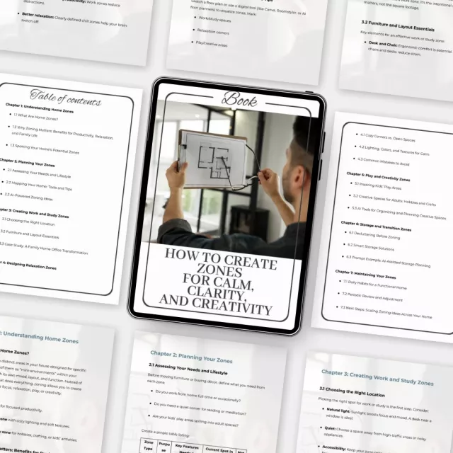 Don’t let clutter and chaos drain your energy. Download How to Create Zones for Calm, Clarity, and Creativity today and learn how to create zones in your home that elevate your mood, boost your productivity, and nurture your well-being. Your journey to a more balanced, inspired home starts now!