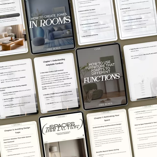 It’s time to take control of your home’s layout and create spaces that work for you. Download the How to Design One Space for Many Uses 3-in-1 Bundle today and start designing your dream space—one that adapts to your needs, no matter the occasion. Don’t wait—your multifunctional space is just a click away!