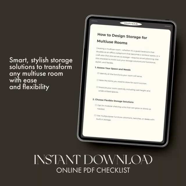 How to Design Storage for Multiuse Rooms Checklist | Smart Home Organization Guide | Digital Download for Flexible, Stylish & Functional Spaces