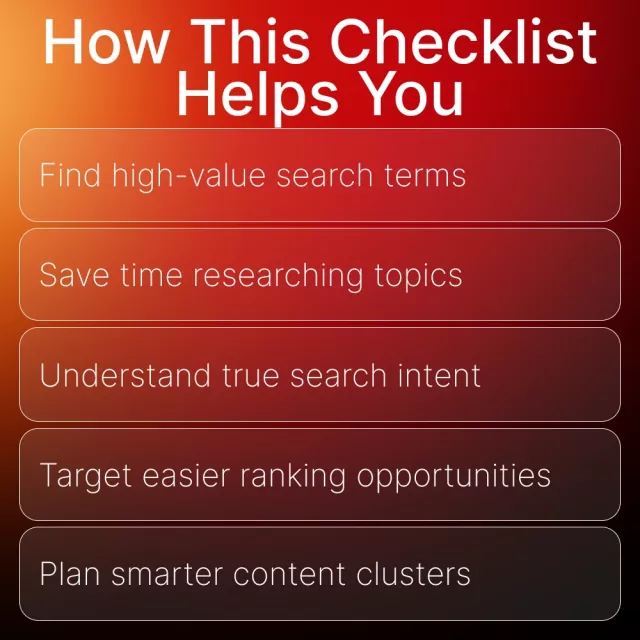 Download your How to Do Keyword Research checklist now and take the guesswork out of SEO. Start finding high-value keywords today and build content that truly connects with your audience!