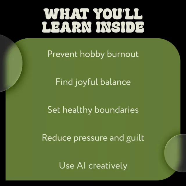 Unlike generic productivity guides, this ebook focuses on emotional sustainability, flexibility, and enjoyment. It combines real-life examples, practical strategies, and modern tools to help you build a hobby life that supports your well-being instead of draining it.