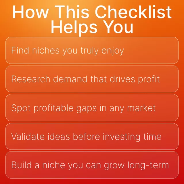 This checklist is ideal for new entrepreneurs, content creators, freelancers, and side hustlers who want clarity on where to start. If you’ve ever wondered how to find a profitable niche online that fits your passion and goals, this guide makes it simple to take action right away.
