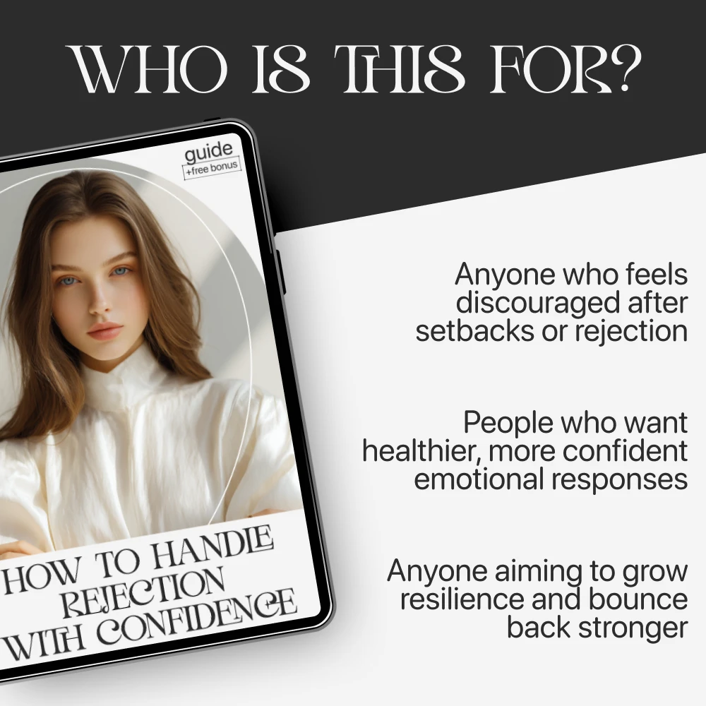 This guide is perfect for anyone navigating personal, professional, or emotional rejection and wanting supportive, easy-to-apply techniques. It’s especially helpful for job seekers, creatives, students, entrepreneurs, and anyone working through self-esteem dips.