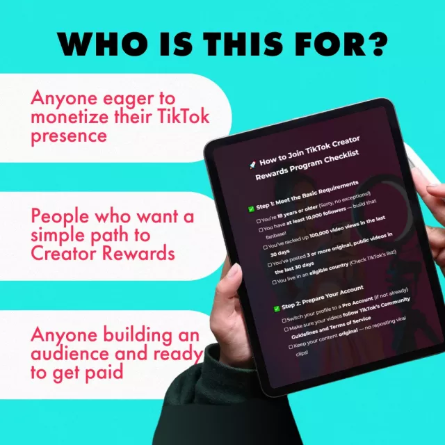 This checklist is made for TikTok creators who are eager to turn their content into revenue. If you’ve ever asked yourself how to join TikTok Creator Rewards Program but felt overwhelmed by unclear steps, this guide will give you the confidence and direction you need. It’s also a powerful resource for social media managers helping clients navigate monetization.