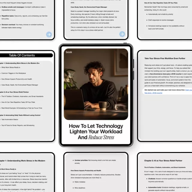 Modern work was not designed to be calm—but it can be manageable. How to Let Technology Lighten Your Workload and Reduce Stress is a practical, easy-to-follow ebook that shows you exactly how to use today’s AI tools to reduce overwhelm, cut mental clutter, and create a healthier, more focused workflow. Instead of adding more apps or complexity, this guide teaches you how to make technology work for you, not against you. If you’ve ever felt buried under emails, decisions, and endless to-do lists, this ebook is your step-by-step roadmap to clarity and control.