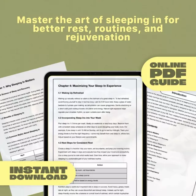 If you’ve ever wished for more rest without the stress, “How to Master the Art of Sleeping In” is your new go-to digital guide. Whether you’re battling burnout, craving deeper rest, or just tired of early alarms, this beautifully designed and thoughtfully written guide walks you through everything you need to know about how to sleep in—without ruining your routine. Sleep is self-care, and this guide helps you master the art of restorative mornings.