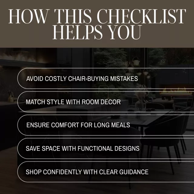 Create a dining room that feels inviting, stylish, and comfortable for everyone who gathers around your table. Download the How to Pick Dining Chairs Checklist now and make your next chair purchase a confident and stress-free decision. Your dream dining space is just one checklist away!