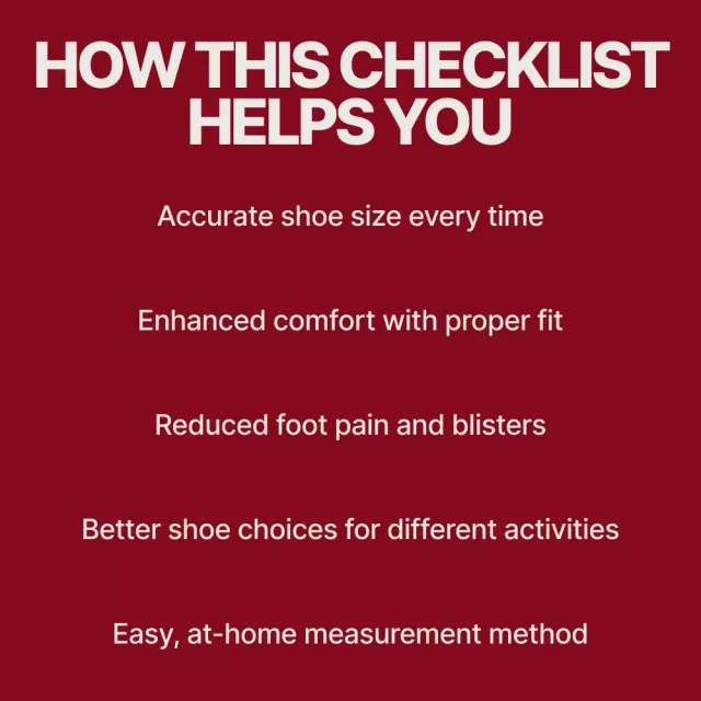 Don’t settle for shoes that pinch, rub, or leave you with blisters. Download the How to Pick the Right Shoe Size checklist now, and start enjoying shoes that fit like a glove. Your feet will thank you!