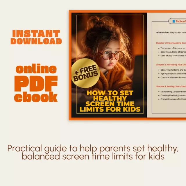 Unlike generic parenting guides, How to Set Healthy Screen Time Limits for Kids blends expert insights with hands-on tools you can use immediately. Each chapter combines psychology, family communication tips, and tech-savvy strategies—all in one easy digital resource.