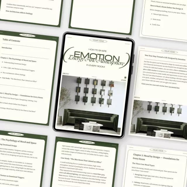 Bring your interiors to life with How to Shape Emotion, Energy, and Atmosphere in Every Room — a beautifully written and practical eBook that teaches you how to set different moods in rooms using color, light, scent, texture, and design psychology. This digital guide helps you understand not just how a room looks, but how it feels. Whether you want a calming bedroom, an energizing workspace, or a cozy living room, this resource shows you how to design with emotion and purpose.