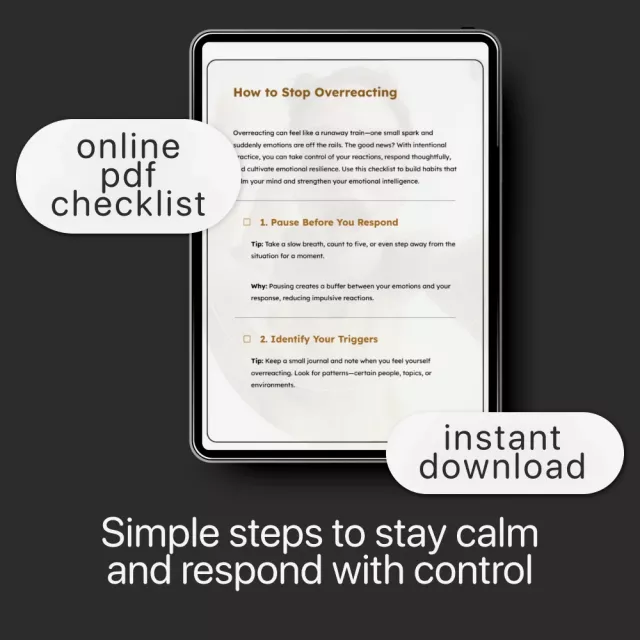 When emotions take over, small moments can spiral fast. How to Stop Overreacting is your go-to digital checklist for regaining calm, clarity, and control when life gets heated. Designed to help you pause, think, and respond instead of react, this practical tool guides you through simple, science-backed steps to manage your emotions and build long-term emotional resilience. Whether you’re navigating conflict, stress, or daily frustrations, this easy-to-follow printable keeps you grounded and in charge of your reactions.