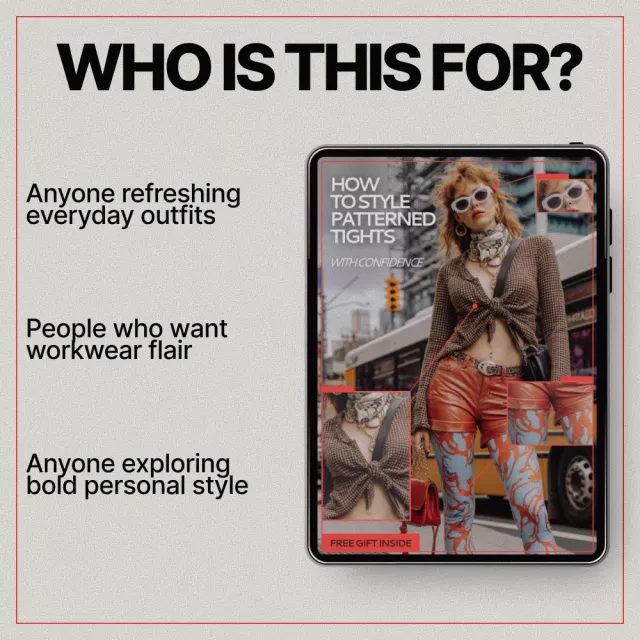 If you’re ready to stop second-guessing your outfits and start wearing patterned tights with confidence, this digital guide is for you. Download now and transform your tights into one of the most versatile pieces in your wardrobe.