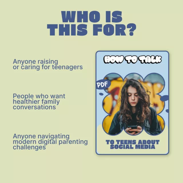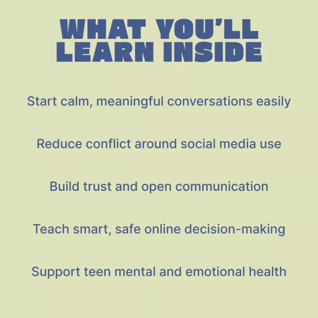 If you’re ready to feel confident about how to talk to teens about social media, this downloadable ebook gives you the tools to start today. Purchase now and begin building healthier, more open conversations that grow with your teen.