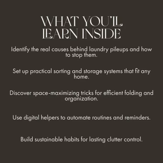 Say goodbye to laundry overwhelm and hello to calm, clutter-free living. Download How to Tame Laundry Clutter today and discover exactly what to do when laundry clutters space. Take control of your laundry routine, one load at a time!