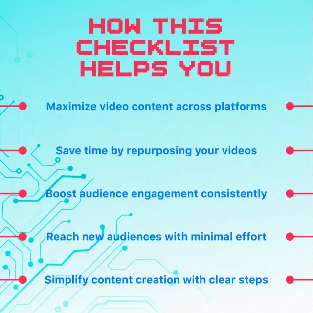 This guide is perfect for content creators, influencers, small business owners, and marketers who want to get more out of their video content. Whether you’re just starting or already have a library of videos, this checklist will help you maximize your content’s potential and keep your audience engaged across multiple platforms.