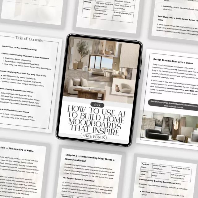 How to Use AI to Build Home Moodboards That Inspire | Digital eBook for Interior Designers, DIY Decor Lovers & Creators | Learn how to use AI to create home moodboards with ease
