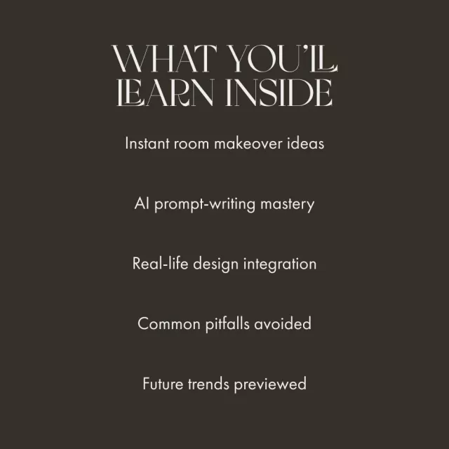 • Time-Saving: Learn how to use AI to generate decor ideas in minutes instead of hours of manual searching or guesswork.