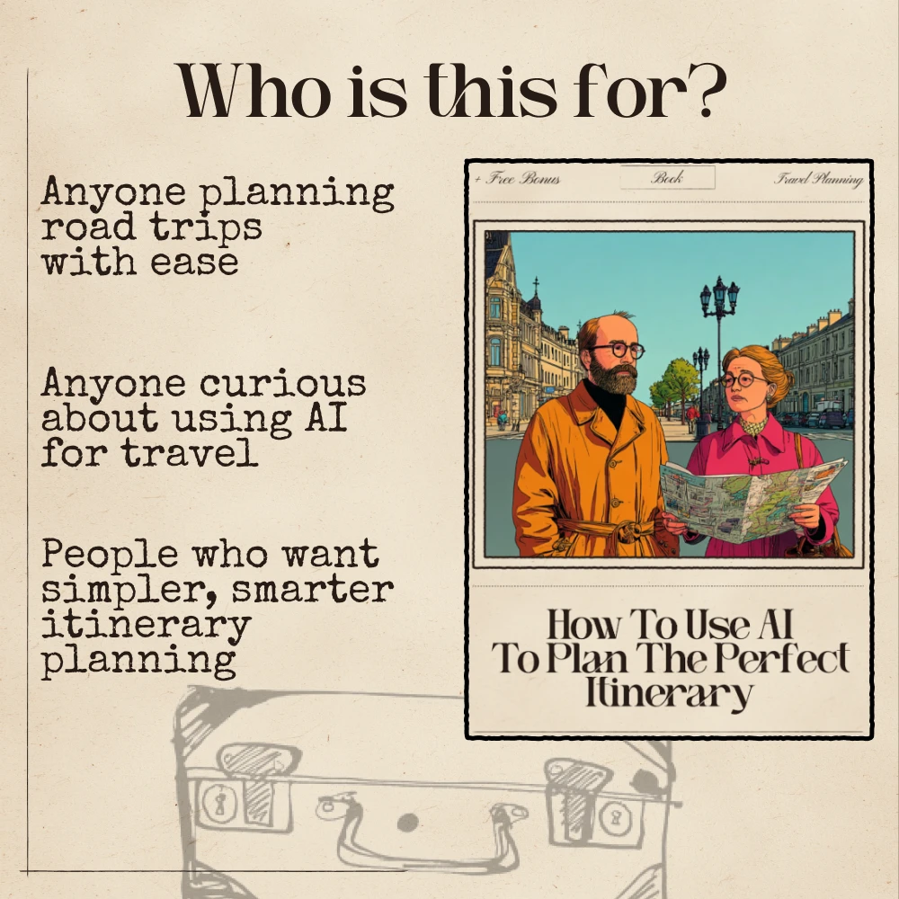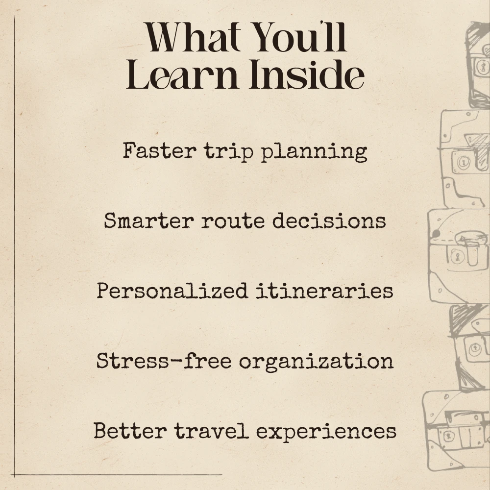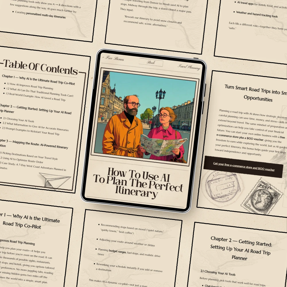 Discover how easy, fun, and stress-free planning your next adventure can be with How to Use AI to Plan the Perfect Itinerary — a powerful digital eBook designed to show you exactly how using ai to plan a road trip itinerary can transform the way you travel. Whether you’re mapping out a weekend escape or a cross-country journey, this guide teaches you how to let AI do the heavy lifting so you can focus on the excitement of the road ahead.