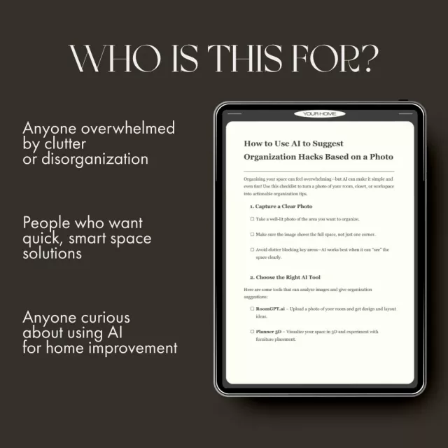 How to Use AI to Suggest Organization Hacks Based on a Photo | Digital Checklist for Smarter Home & Workspace Organization | AI Decluttering Guide Download