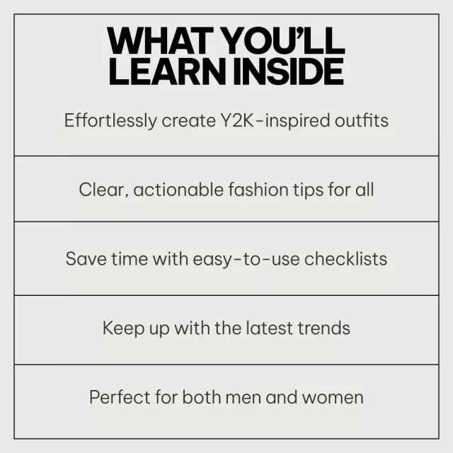 The Iconic Y2k Fashion Ideas Bundle has breathed new life into my wardrobe! With practical checklists and expert styling advice at my fingertips, mastering the bold look of the Y2K era has never been easier.
