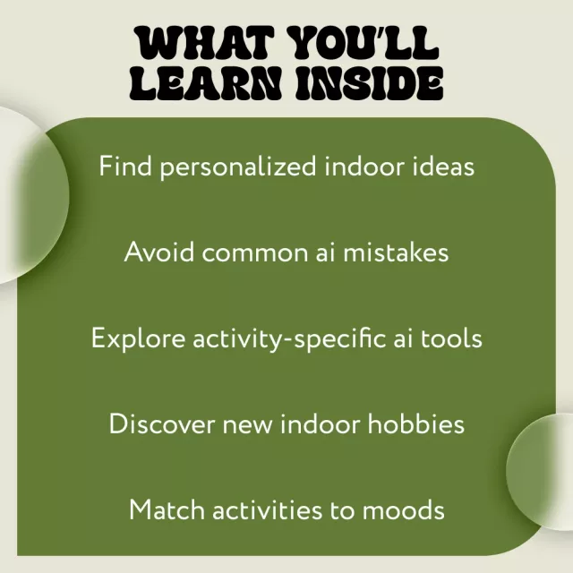 Unlike generic activity lists, Indoor Fun with Smart AI Tools teaches you how to use AI as a personal idea generator tailored to you. Instead of one-size-fits-all suggestions, you’ll learn a repeatable system you can use anytime your interests change.
