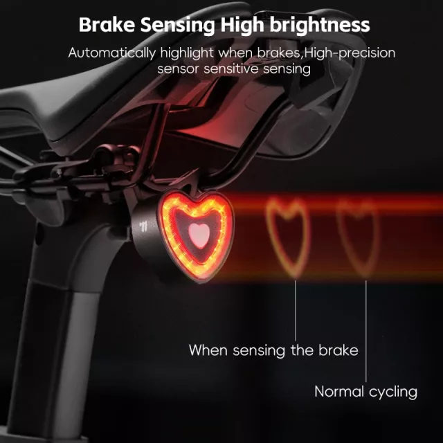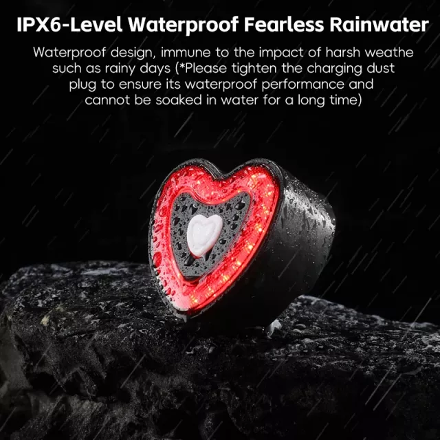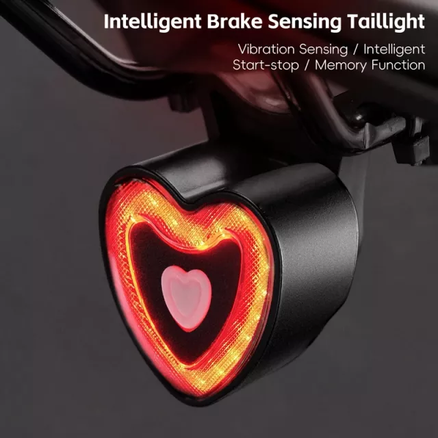 Intelligent Heart-Shaped Bike Tail Light – Waterproof Brake Sensing LED Rear Light