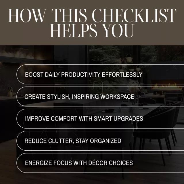 • Step 3: Power Up Productivity – Task lighting, clutter-free surfaces, and visual to-do boards.