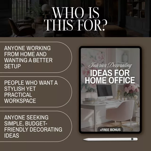 Your home office should be more than just a desk and a chair—it should be a space that inspires focus, creativity, and balance. With Interior Decorating Ideas for Home Office, you’ll receive a practical and beautifully designed digital download packed with smart tips, a step-by-step checklist, and decorating ideas that make your workspace both functional and inspiring. Whether you’re working full-time from home, freelancing, or simply want a cozy corner to get things done, this guide makes designing your dream home office simple and stress-free.